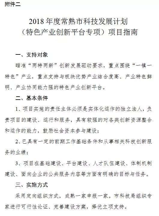 2、2018年度常熟市科技發(fā)展計(jì)劃(特色產(chǎn)業(yè)創(chuàng)新平臺(tái)專項(xiàng))項(xiàng)目指南