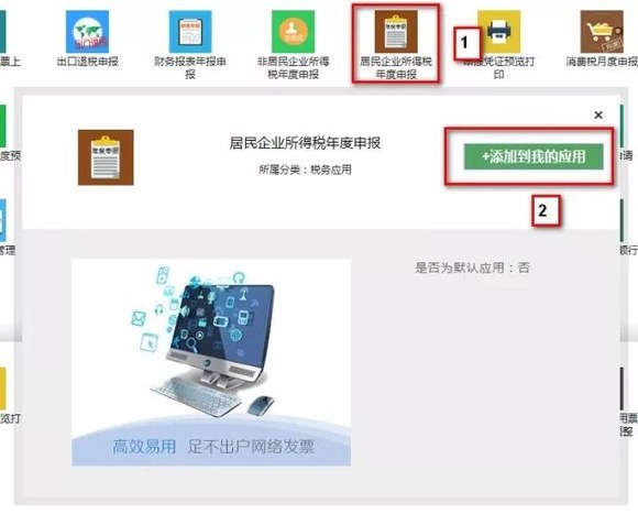 找到并點擊“居民企業(yè)所得稅年度申報”APP。點擊添加到“我的應用”,系統(tǒng)提示應用添加成功。