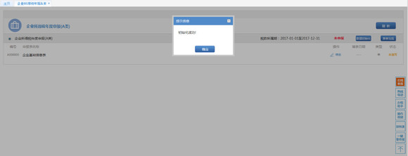 點擊“數(shù)據(jù)初始化”,系統(tǒng)自動獲取相關報表的稅務登記信息、相關表單上年結轉數(shù)等數(shù)據(jù),系統(tǒng)顯示“數(shù)據(jù)初始化成功”,點擊“確定”,完成數(shù)據(jù)初始化。