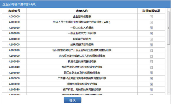 *二步:填寫《企業(yè)所得稅年度申報A類表單》,《表單》的填寫有兩種途徑,一是《A000000企業(yè)基礎信息表》保存后系統(tǒng)自動跳出《表單》供納稅人填寫;二是納稅人可點擊列表頁面右上角“表單勾選”按鈕填寫。