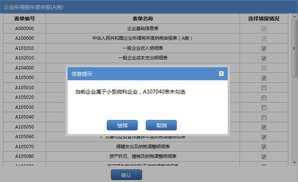 注意事項:后續(xù)《000000企業(yè)基礎信息表》修改后保存的同時會給出《表單》供勾選,用戶根據(jù)實際情況重新進行表單勾選,原來勾選的表單所填寫的數(shù)據(jù)會保留。表單勾選完成點擊確認,系統(tǒng)會根據(jù)用戶基礎信息表的填報情況,對報表勾選進行提示,用戶可根據(jù)自己實際情況進行判斷,如需增加相應表單,點擊取消,再勾選相應表單之后確定。