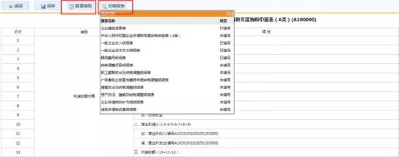 *三步:填寫A101010表至A104000表后,返回主表A100000,點擊“讀取數(shù)據(jù)”,填寫其他可以填報的數(shù)據(jù)并核對后保存。