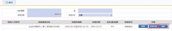申報成功*二天晚上8點前,納稅人發(fā)現(xiàn)申報有誤,可點擊“申報成功”右側的“涉稅查詢”按鈕或通過點擊頁面左側的“涉稅查詢”,通過輸入所屬期等條件,可以查看對應申報,點擊“申報作廢”按鈕可以進行申報作廢。