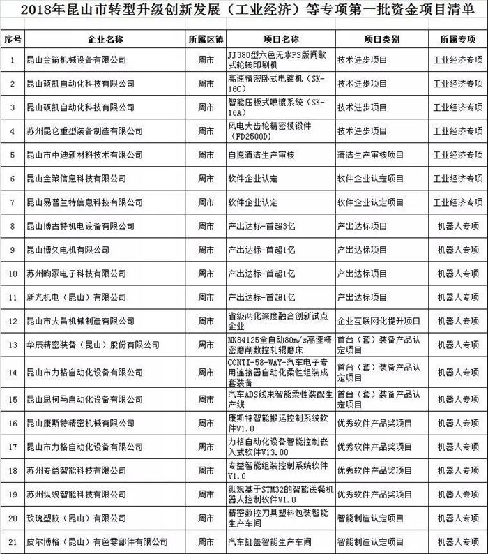 2018年昆山市轉(zhuǎn)型升級創(chuàng)新發(fā)展(工業(yè)經(jīng)濟)等專項*一批擬立項目公示