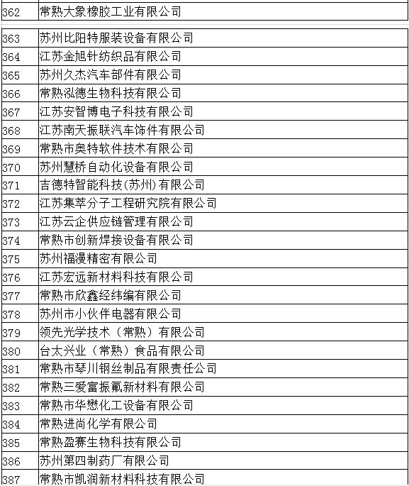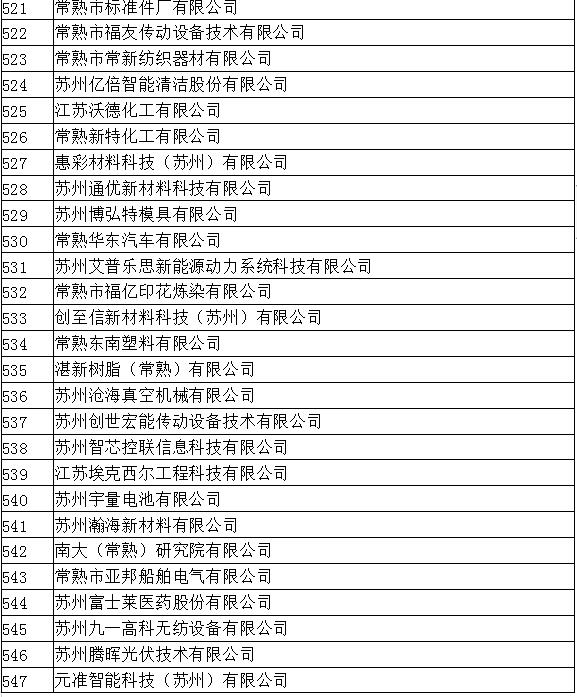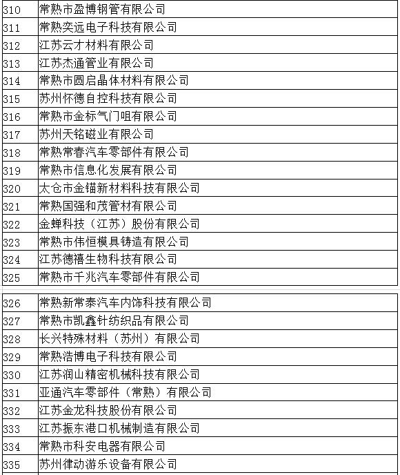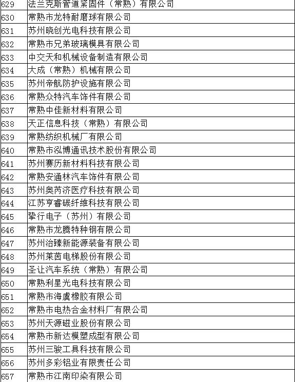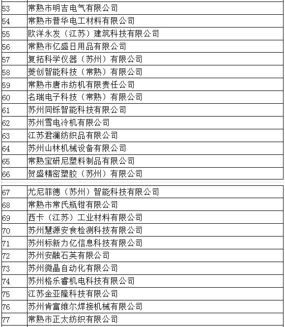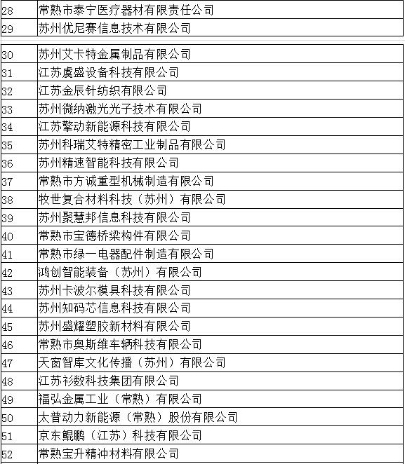 為推進(jìn)全市中小企業(yè)高質(zhì)量發(fā)展,根據(jù)蘇州市工信局《關(guān)于轉(zhuǎn)發(fā)省工信廳<關(guān)于組織開展2022年度“千企升級”企業(yè)入庫培育和創(chuàng)新型中小企業(yè)評價工作的通知>的通知》要求,經(jīng)企業(yè)自主申報、“千企升級”平臺自評打分、信用審查、部門審核、黨委會討論通過等程序,現(xiàn)將2022年常熟市創(chuàng)新型中小企業(yè)名單予以公告。